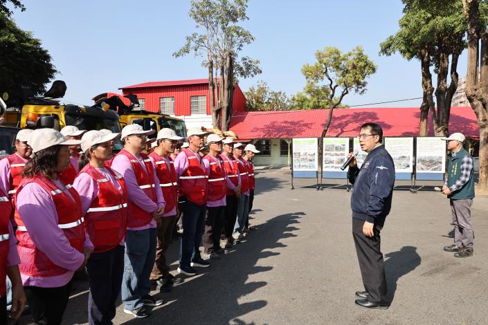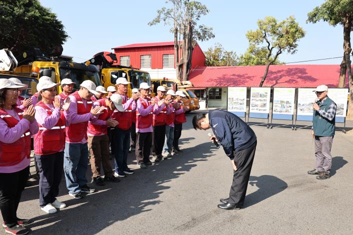 黃偉哲表示,在農曆年前最後一個上班日,特別代表市民向工務局第一線同仁表達感謝。過去一年同仁除肩負日常養護與建設任務,面對地震與風災等突發事件,也第一時間投入,甚至跨縣市支援花蓮救災,展現高度專業與責任感,令人敬佩。他再次感謝同仁長期堅守崗位,並提前向大家拜年,祝福新春順利、闔家安康。