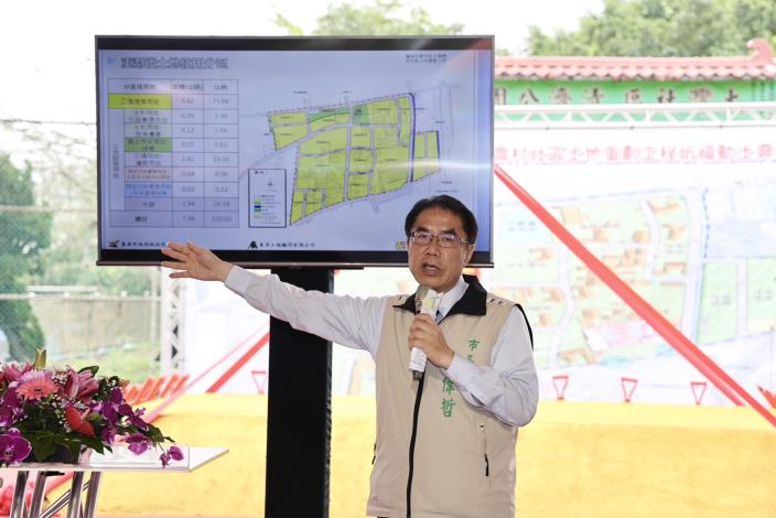 黃偉哲強調,農村社區土地重劃後,社區的土地將變成住宅區,可提高價值,政府把道路及排水等公共設施做好,可大幅提高社區的生活品質,又可獲得公共用地,可用來興建活動中心或親子幼兒館等,對地方居民及政府是雙贏的政策。