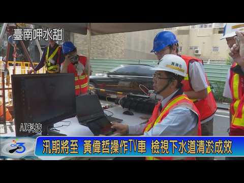 做好準備 黃偉哲操作TV車 檢視下水道清淤成效